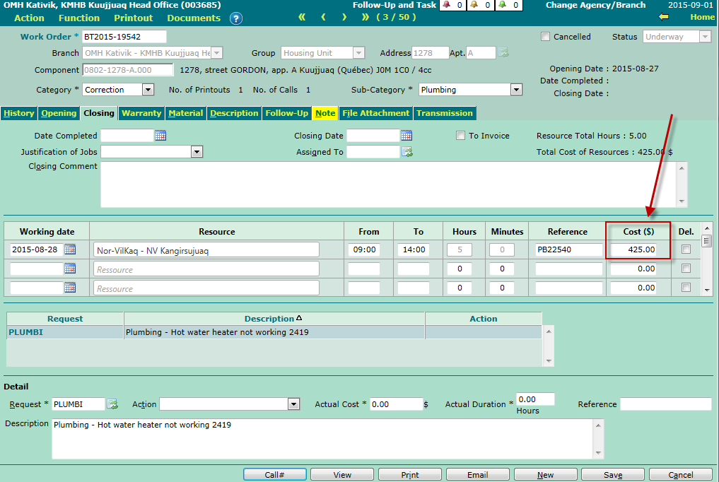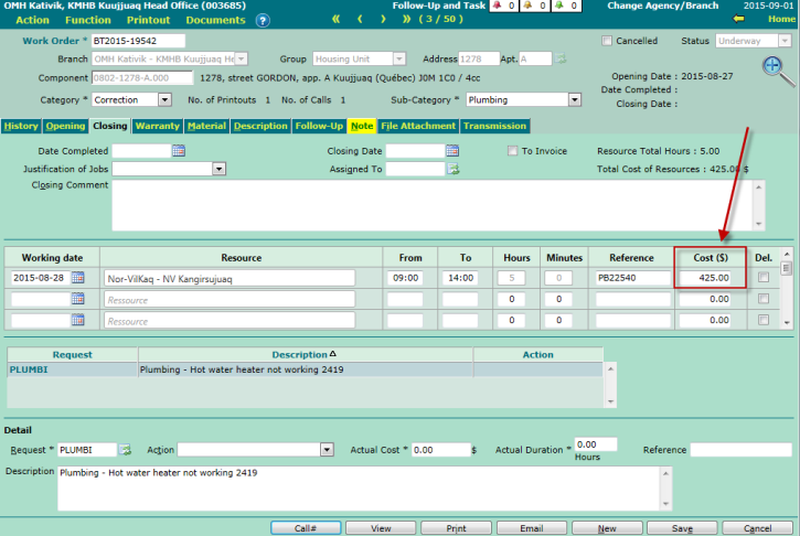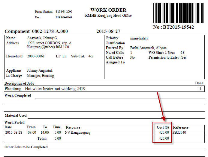 Cost Entered by Resource Now Shown on the Work Order The cost entered by resource is now shown on the work order. This change was added in version 2.12. |