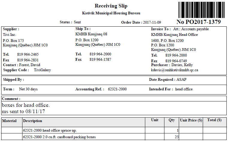 Furthermore, the materials' unit price may be shown or not on one or several copies, depending on the configuration.
